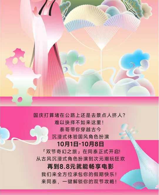【月下泰有戏】 | 双节预告大放送 | 8.8元看电影 | 免费停车3小时! 活动时间2025.10.1至2025.10.8